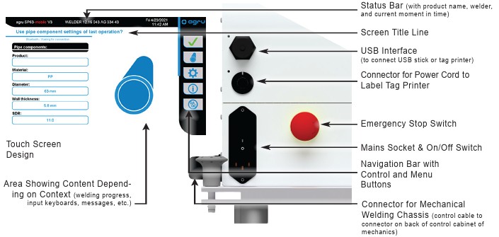 L'Agru SP 63-S Mobile V3 est une machine de soudage bout-à-bout par infrarouge pour thermoplastiques (tuyaux et raccords). Elle peut fonctionner en atelier ou en installation mobile, y compris en position de soudage en hauteur (overhead)