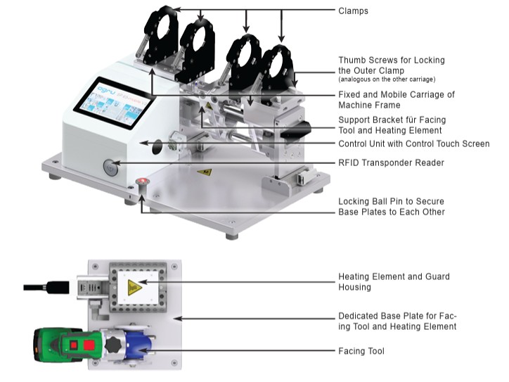 - Une fois la phase de chauffage terminée, les tuyaux sont automatiquement écartés pour permettre le retrait manuel de l'élément chauffant.
