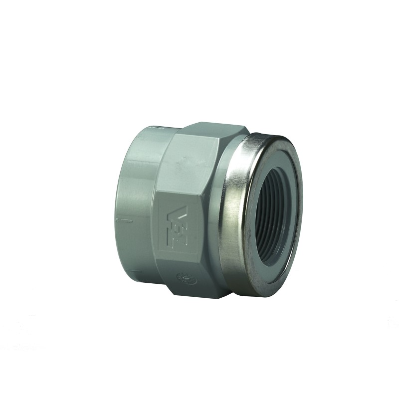 MANCH.FEM.A COLLER TARAUDE AVEC BAGUE RENFORT PVC-C